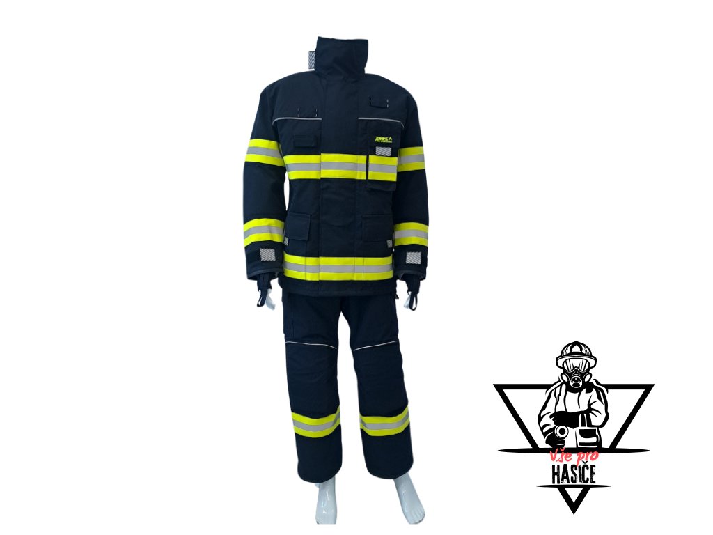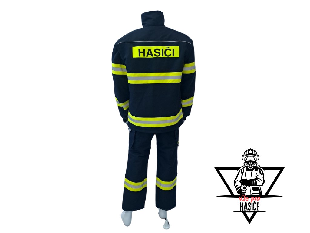 - Je opatřen reflexními pásy žluto stříbrné barvy 75 mm a nápisem HASIČI